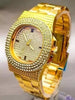 Golden Stone Studded Diamond Wrist Watch For Boys & Men